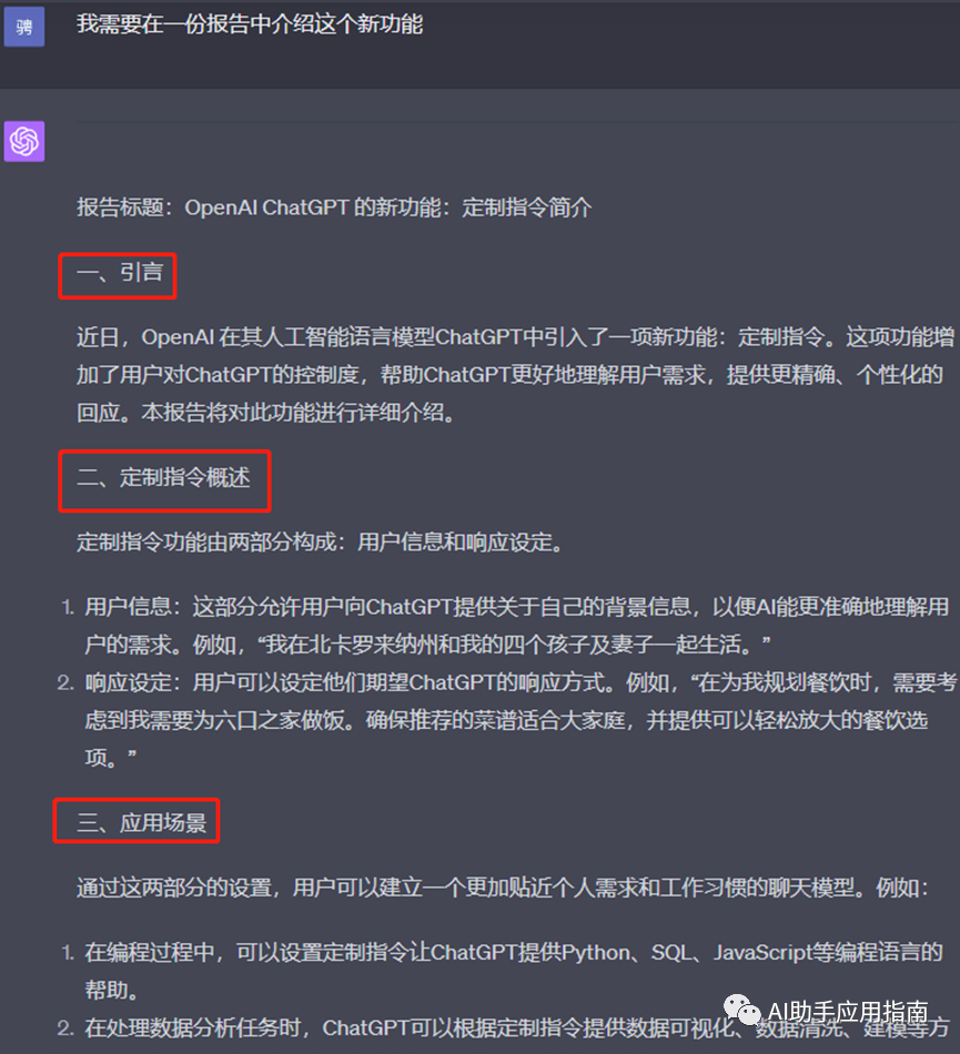 第二,我要什么?:我也设定了希望ChatGPT如何回应我的请求。例如,我希望在公众号写作时,ChatGPT能够提供面向大众的写作风格,而在写报告时,采用更正式的写法。