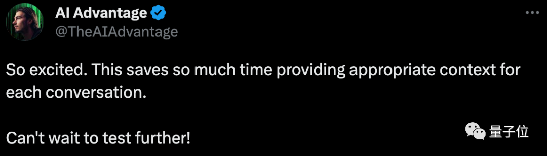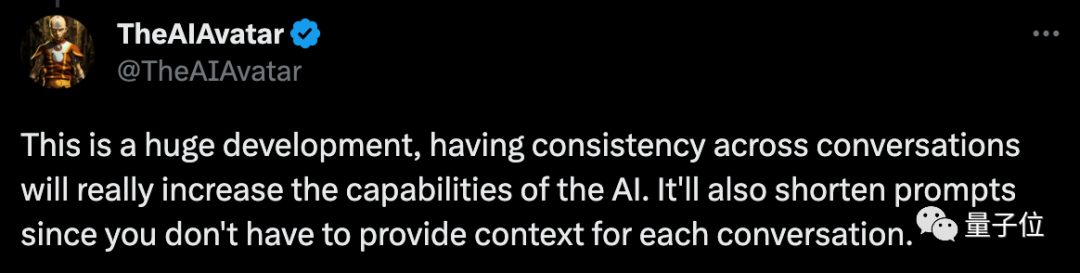 有人觉得这简直是个大进步啊,能提高AI的智力,而且可以缩短提示,不用再为每段对话提供上下文提示了。