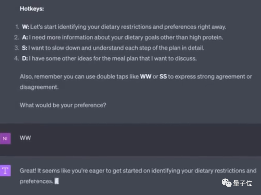 它分为两部分,让用户和ChatGPT做一段自我介绍,并且提前给出想要的答案形式。