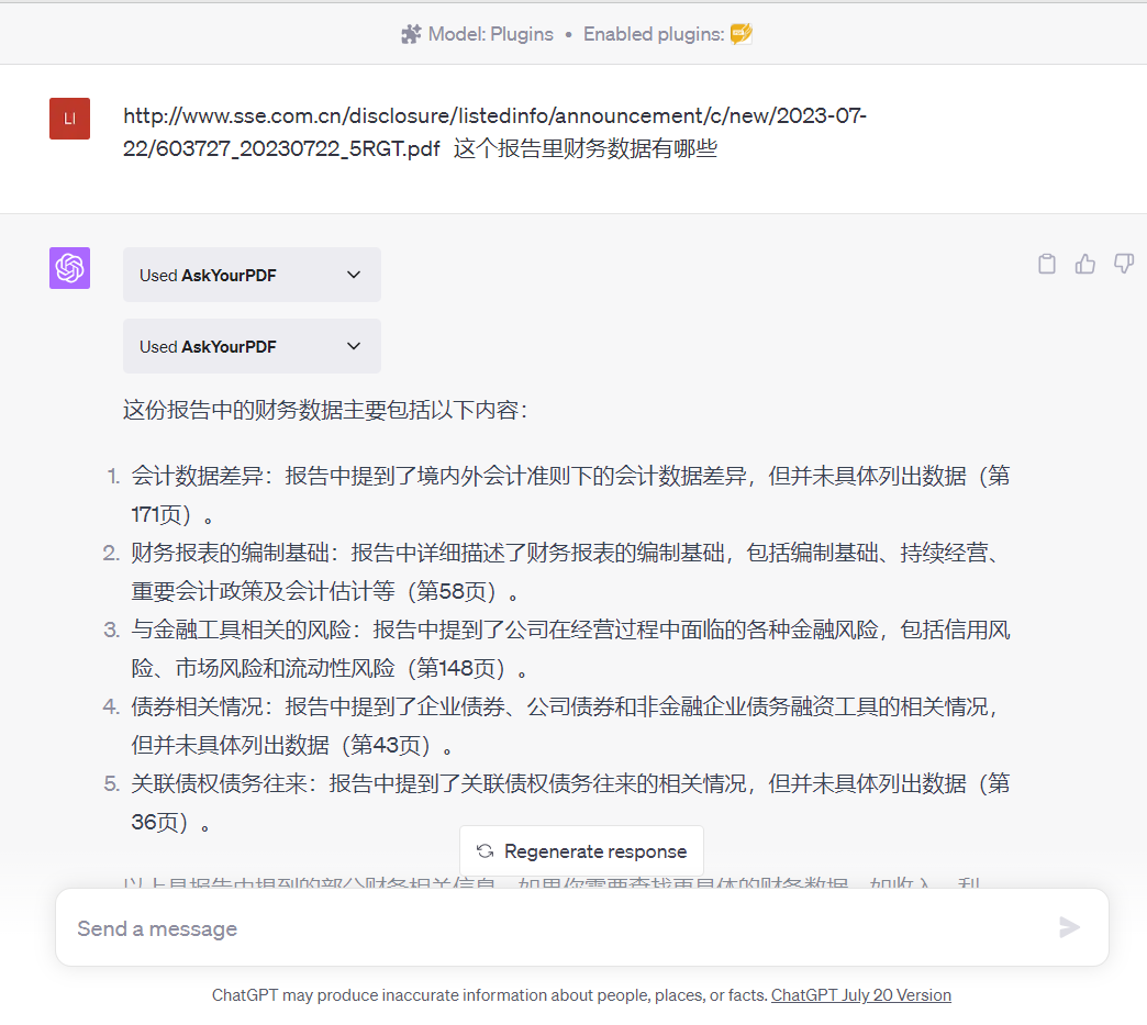 使用这个插件有两种方式,最方便的一种方式就是直接把上面介绍类型的文件的URL给到ChatGPT,建议在这个 URL 外网能访问的链接。(ChatGPT 不会魔法)