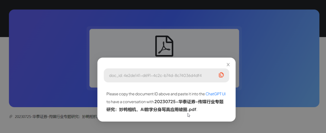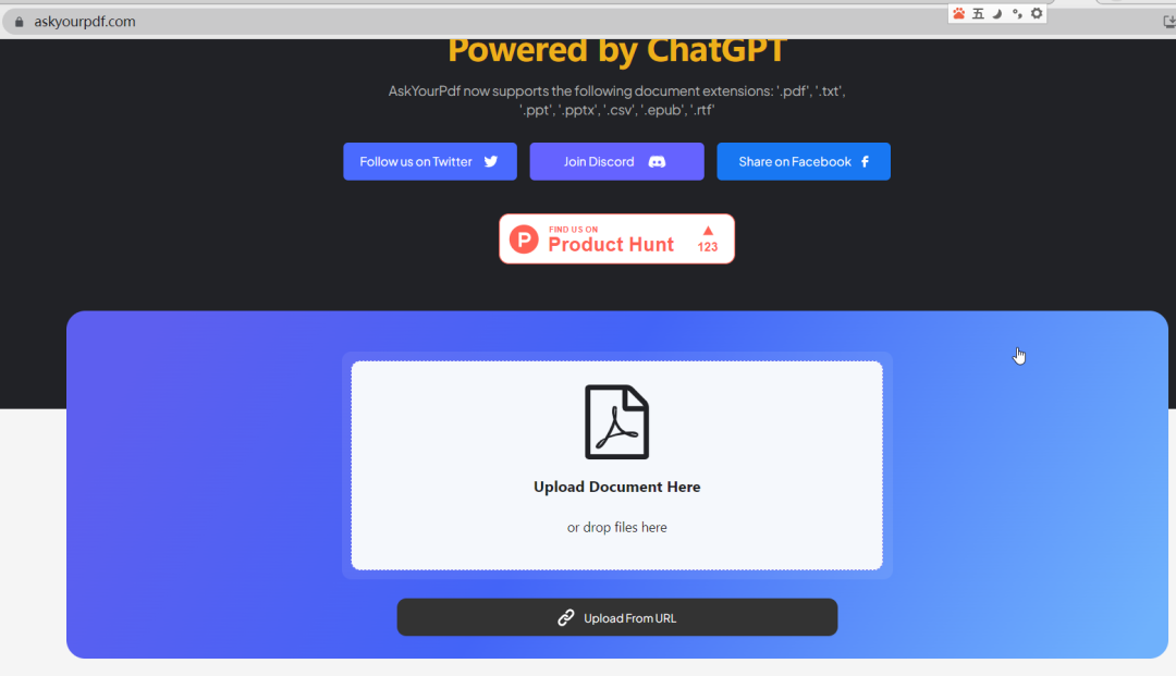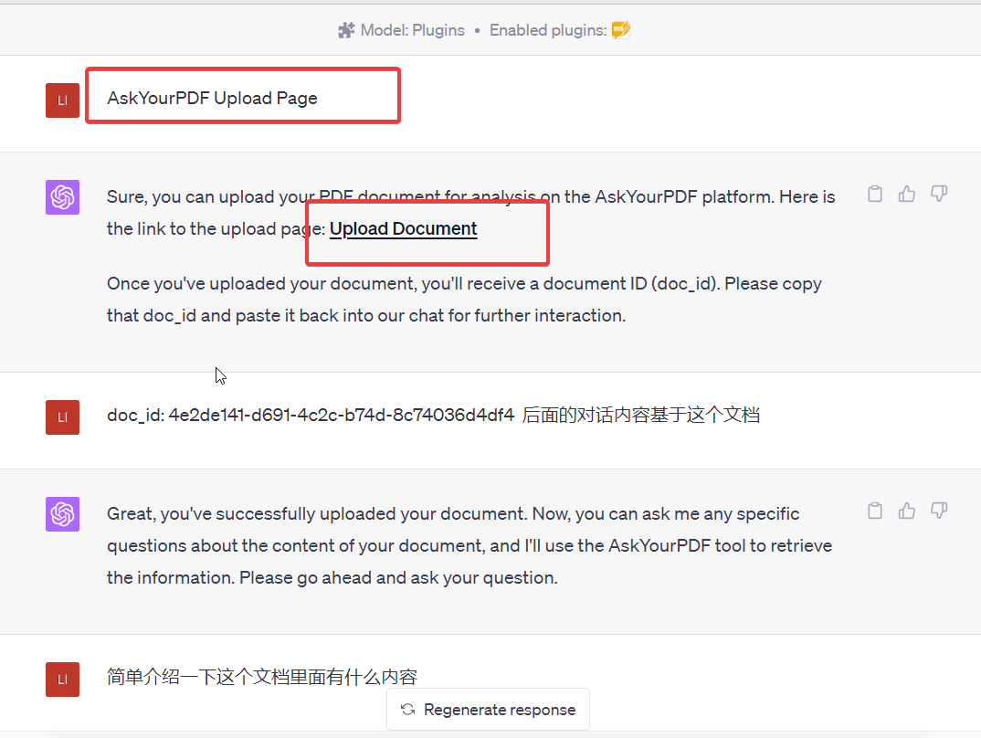 第二种方式就是在对话中输入“AskYourPDF Upload Page”,