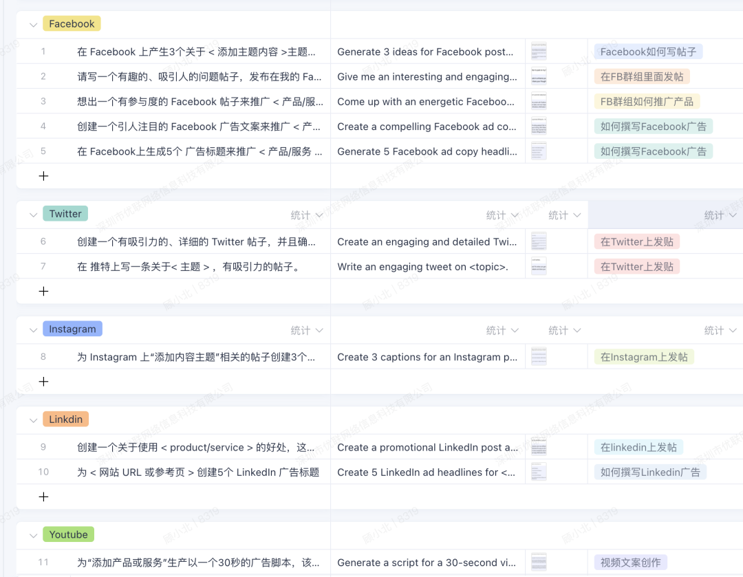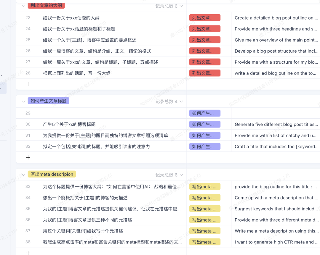我们有做独立站,所以会有内容营销,为此,我们整理了一些指令,比如