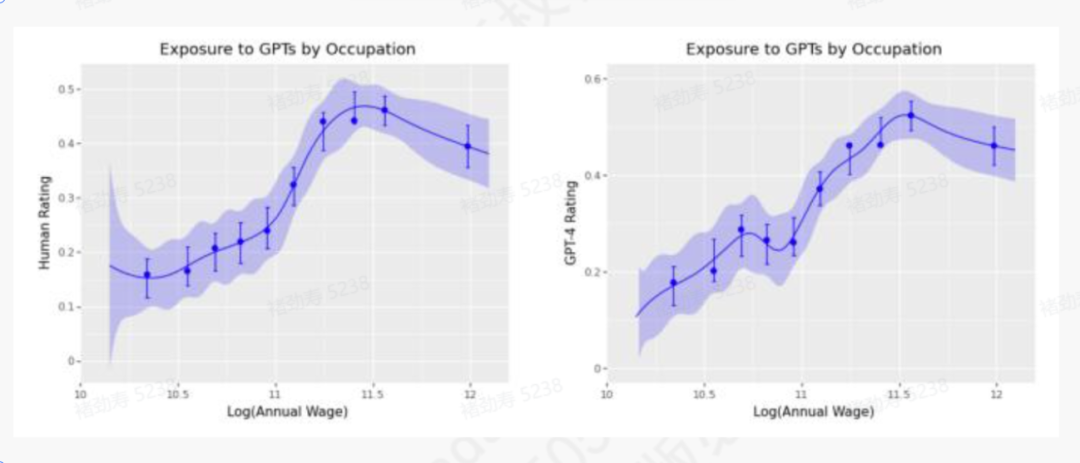 他们还发现工资越高的职业被替代的可能性越高,这个趋势在年收入大于10万美元之后才趋于相反。大语言模型影响的,恰恰是中间阶层。