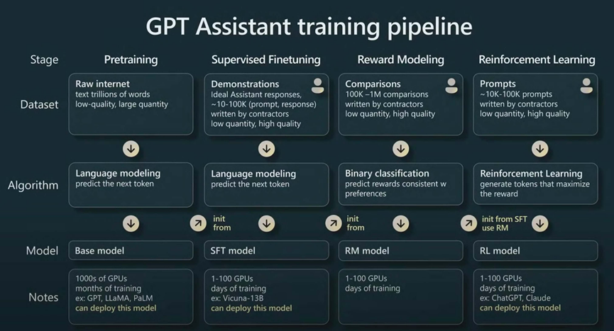 语言是严肃思考、决策和沟通的工具,相比感知、行动,从孩子的获取先后和难易程度来看,应该是智能中最难的任务。但ChatGPT很可能已经攻破了其中的密码,正如Wolfram说的“”。这确实预示着未来我们通过计算语言或者其他表示方式,有可能进一步大幅提升整体智能水平。由此推广开来,人工智能的进展,有可能在各学科产生类似的效应:原来以前认为很难的课题,其实换个角度并不是那么难的。加上GPT这种通用智能助手的加持,“一些任务从基本不可能变成了基本可行”,最终使全人类的科技水平达到新高度。本书的第二部分是ChatGPT与Wolfram|Alpha 系统对比与结合的介绍,有较多实例。如果说GPT这种通用智能更像人类的话,大部分人类确实是天生不擅长精确计算和思考的,未来通用模型与专用模型的结合,应该也是前景广阔的方向。稍有遗憾的是,本书重点只讲了ChatGPT的预训练部分,而没有过多涉及后面也很重要的几个微调步骤:监督微调(SFT)、奖励建模和强化学习。这方面比较好的学习资料是2023年5月OpenAI创始成员、前Tesla AI负责人Andrej Karpathy在微软Build大会上的演讲“State of GPT”。关于AI能力的上限,他认为,根据“计算等价原理”,ChatGPT这种通用人工智能的出现证明了“(人类)本质上没有任何特别的东西——事实上,在计算方面,我们与自然中许多系统甚至是简单程序基本上是等价的”。因此,曾经需要人类努力完成的事情,会逐渐自动化,最终能通过技术免费完成。很多人认为是人类特有的创造力或原创力、情感、判断力等,AI应该也能够拥有。最终,AI也会逐步发展出自己的世界。这是一种新的生态,可能有自己的宪章,人类需要适应,与之共存共荣。根据“计算不可约性原理”(即“总有一些计算是没有捷径来加速或者自动化的”,作者认为这是思考AI未来的核心),复杂系统中总是存在无限的“计算可约区”,这正是人类历史上能不断出现科学创新、发明和发现的空间。所以,人类会不断向前沿进发,而且永远有前沿可以探索。同时,“计算不可约性原理”也决定了,人类、AI、自然界和社会等各种计算系统具有根本的不可预测性,始终存在“收获惊喜的可能”。人类可贵的,是有内在驱动力和内在体验,能够内在地定义目标或者意义,从而最终定义未来。最高效的方式是发掘新的可能性,定义对自己有价值的东西。