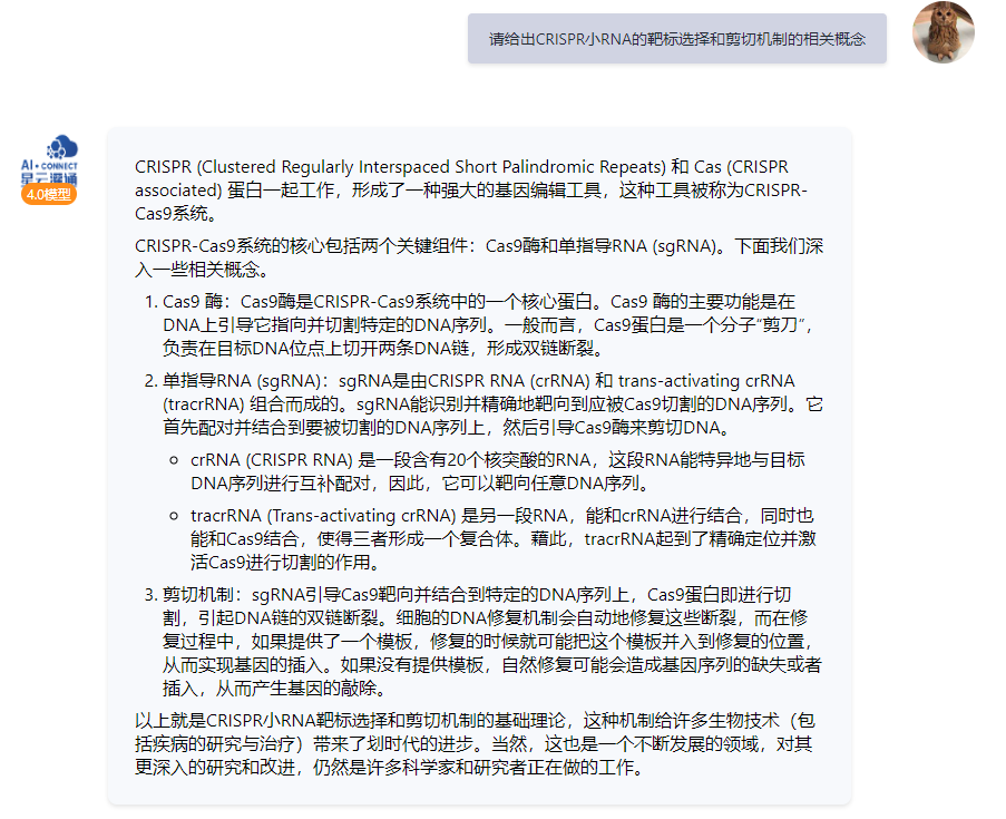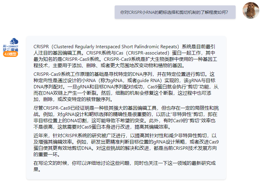 那我们可以这么问GPT:“你对CRISPR小RNA的靶标选择和剪切机制的了解程度如何?”